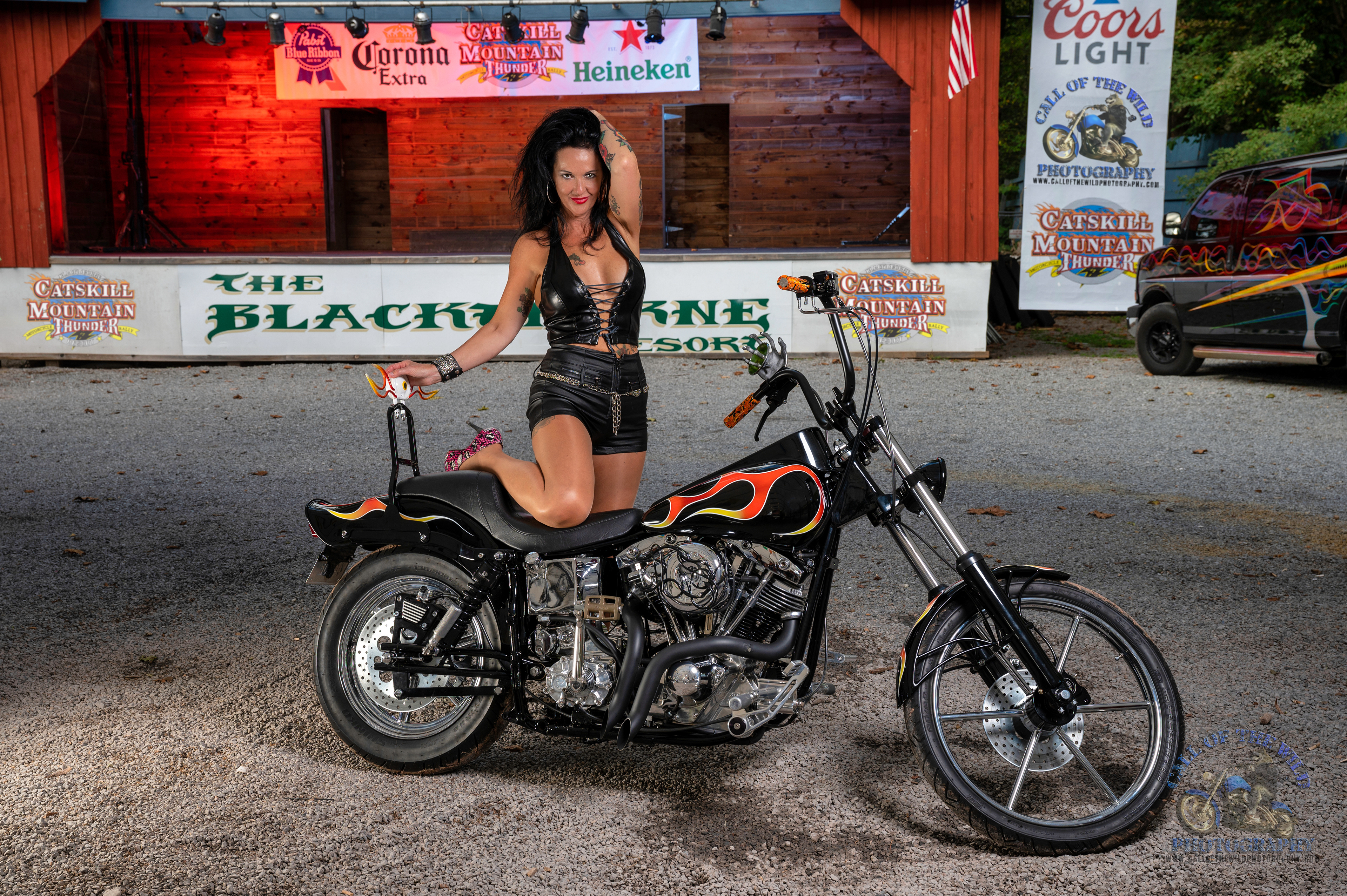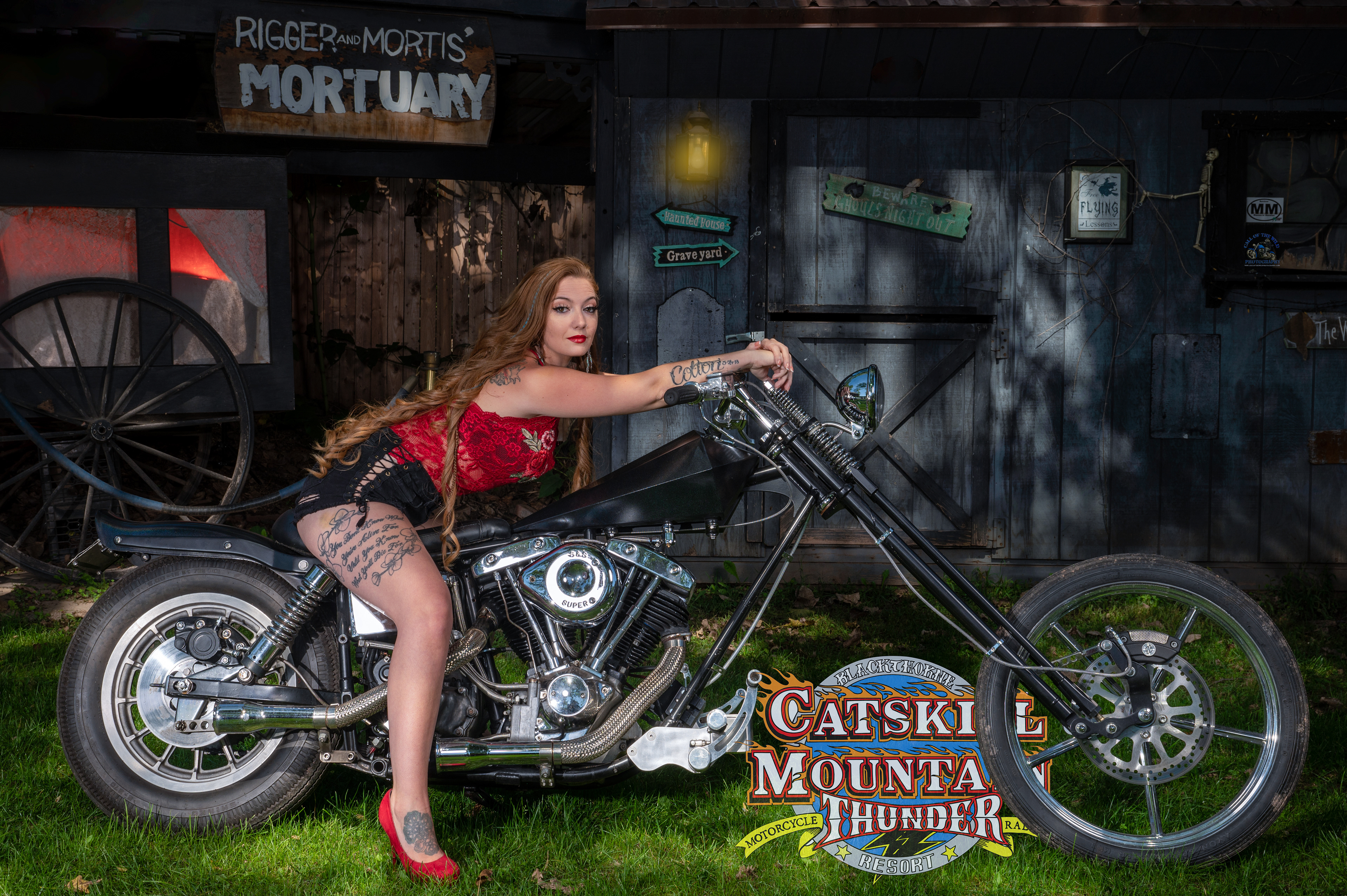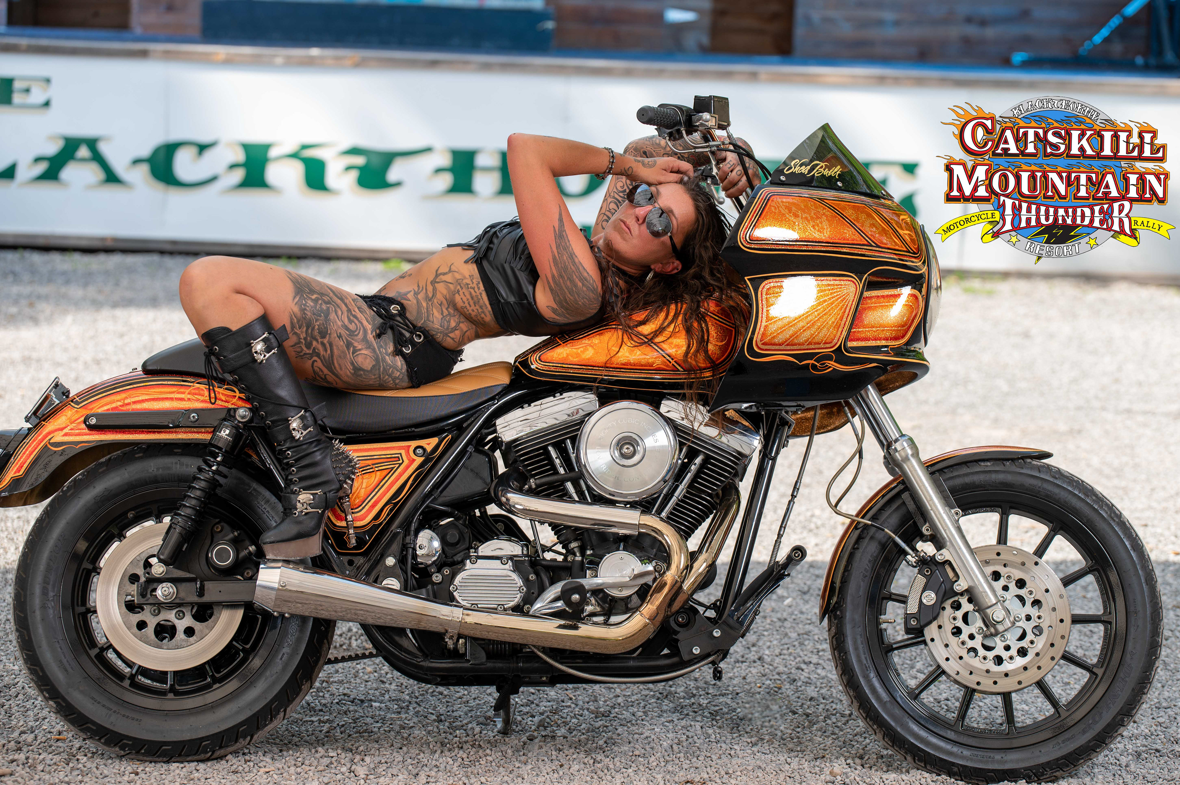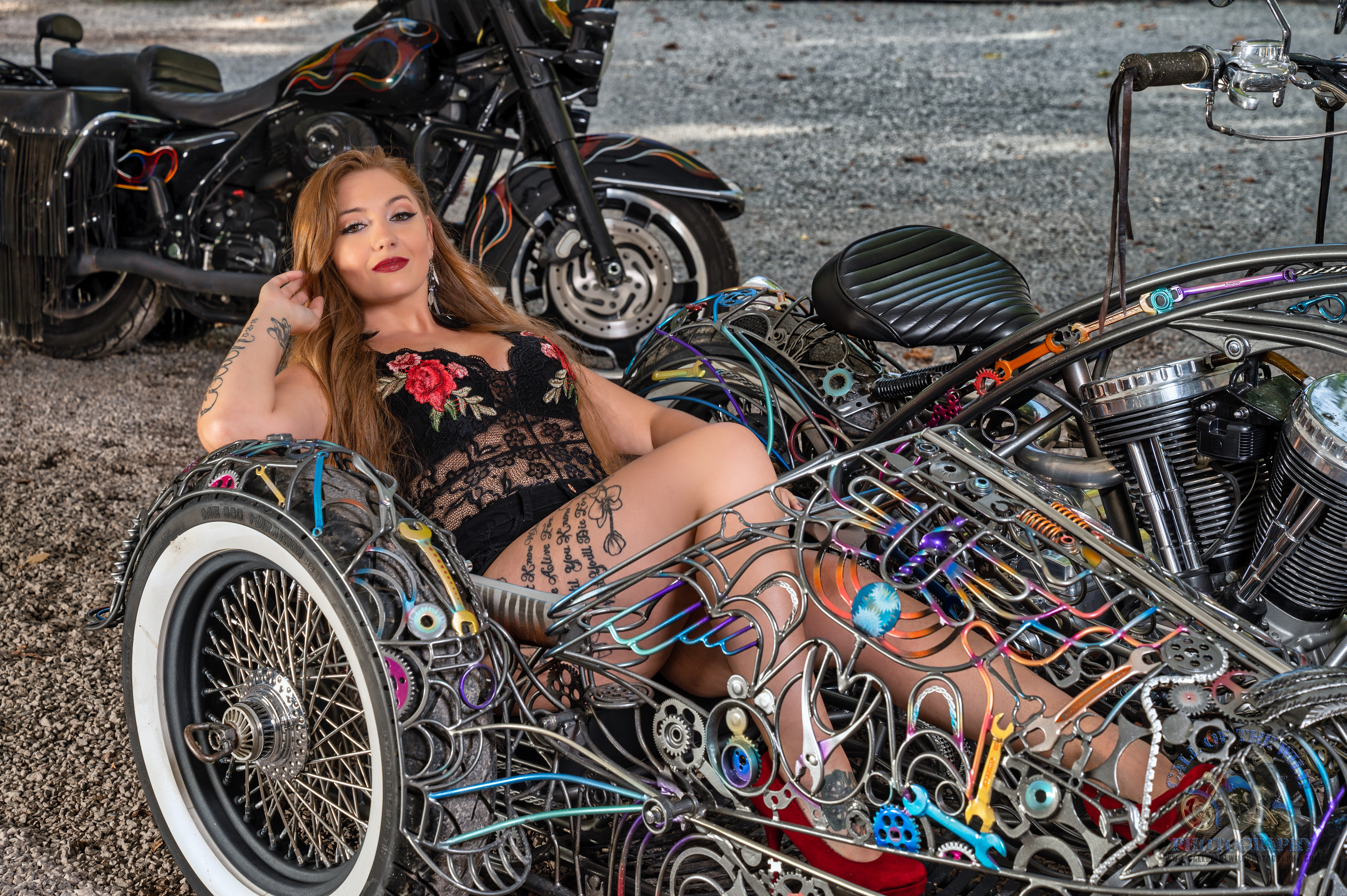Jessica on tribal Iron Customs bike